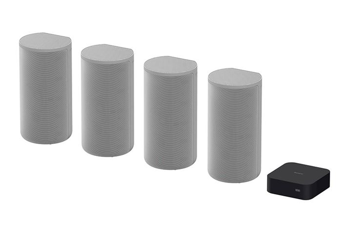 さらに、4体のスピーカーはコントロールボックスとワイヤレス接続が可能。音場最適化技術によりスピーカーの置かれている空間を把握し、その場所を前提に最適な音響空間を自動で生成できるので、部屋の形状などにとらわれることなく、従来のホームシアタースピーカーと比べて自由度の高いレイアウトが可能だ。