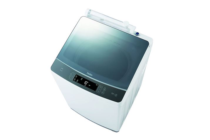洗濯・脱水容量10kgの全自動洗濯機。ハーフミラーガラストップを採用し、スタイリッシュなデザイン性とお手入れのしやすさを兼ね備えたのが特徴だ。