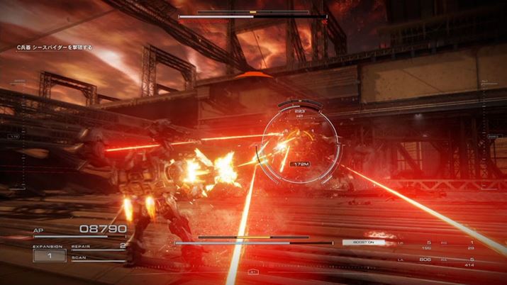 過去の「アーマードコア」シリーズ自体が縦横無尽に移動する機体をカメラで追い続け、照準を合わせること(6では自動ロックオン搭載)で敵機を撃破していく、ある意味非常に忙しいゲームだ。単純な敵の強さだけでなく、処理する情報量の多さが難易度に拍車をかける。