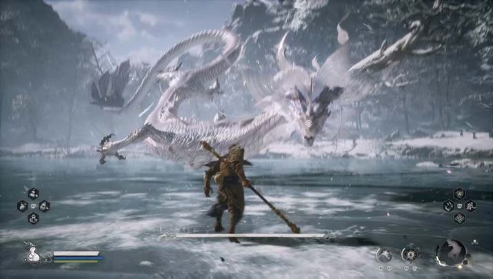 本作の主人公である悟空は棍という武器を使用するのだが、攻撃は通常攻撃である”軽棍”(□ボタン)、強攻撃である”重棍”(△ボタン)に大きく分けられる。瞬身を成功させたり軽棍を当てたりすると”棍勢”というゲージが段階的に溜まっていき、それらを消費することで強力な技が繰り出せるというのが基本だ。