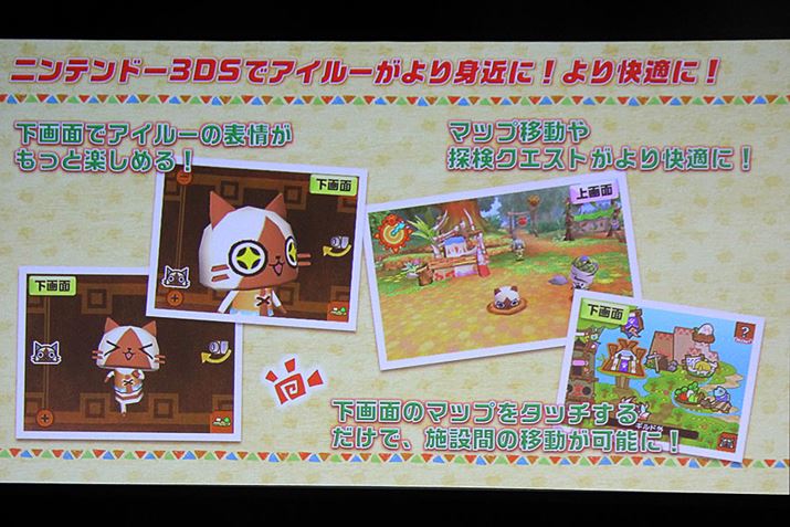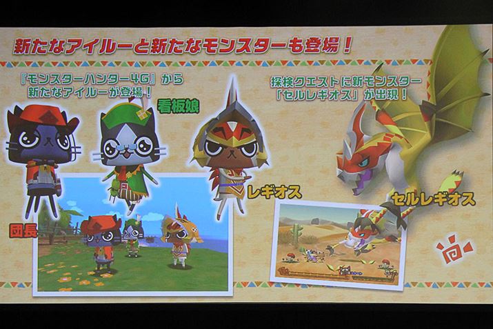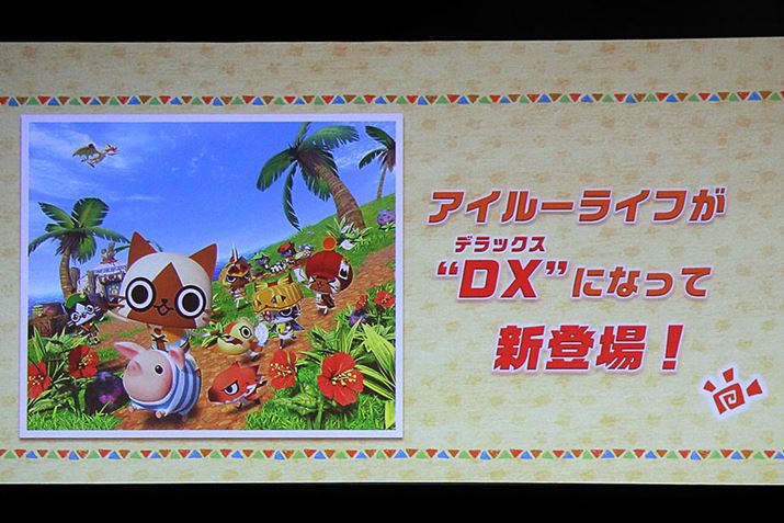 本イベントでは、「モンスターハンタークロス」以外にも注目の発表があり、モンスターハンターシリーズの最新情報コーナーとして、新作「モンハン日記 ぽかぽかアイルー村DX」が紹介された。
