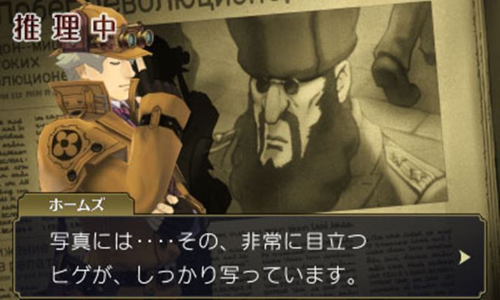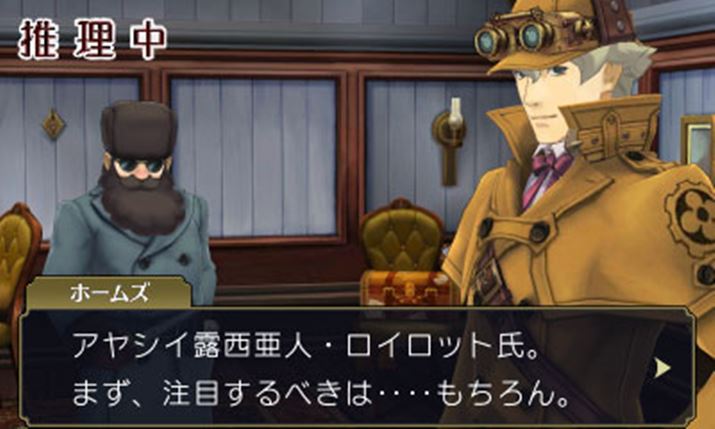 新要素として、ホームズがいる場面では“共同推理”が発生することがある。ホームズは真実を導き出すべく超絶推理を披露するのだが、天才すぎて、鋭すぎる観察眼と自由すぎる推理力は放っておくと、とんでもない方向へと進んでしまう。そこで、プレイヤーが成歩堂龍ノ介として推理のオカシイ部分にツッコむことで、推理の道筋を修正して彼の推理を真実へと誘導していくことになる。ホームズの超絶推理と、成歩堂龍ノ介のツッコミで奏でる新感覚の謎解き、それが「共同推理」の醍醐味だ。