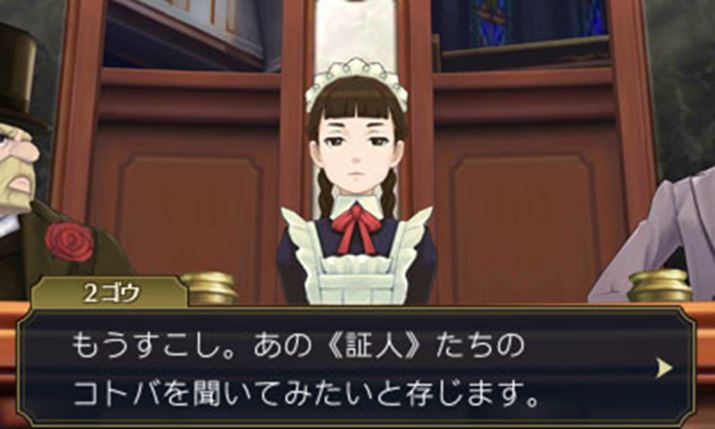 法廷パートの新要素は、6人の陪審員を相手にする“陪審バトル”。陪審員たちは、尋問の様子を見て被告人が有罪か無罪かの評決を決める。彼らは有罪と思えば黒、無罪ならば白の大天秤の皿に炎弾を撃ち込むのだ。全員が有罪に票を入れてしまうと、そこで裁判は終了となってしまうため、弁護側は「最終弁論」で陪審員の説得を行い、これを回避しなければならない。同じ証言を聞いても、陪審員が有罪と思う理由はさまざまだ。