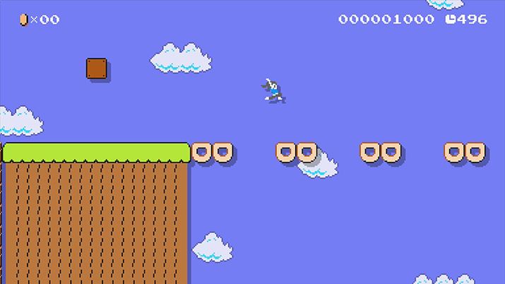 配置できるのは、何もパーツだけではない。コースのいろいろな場所に“オト”をしかけることも可能だ。意外なところに仕掛ければ、ひと味違う「スーパーマリオ」のコースに仕上げることができるだろう。