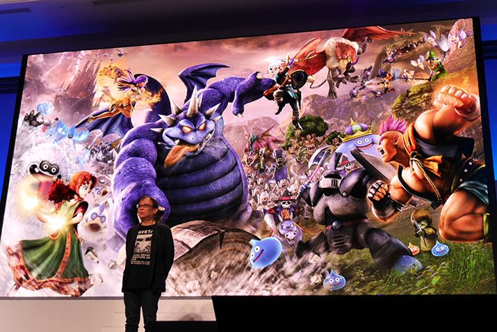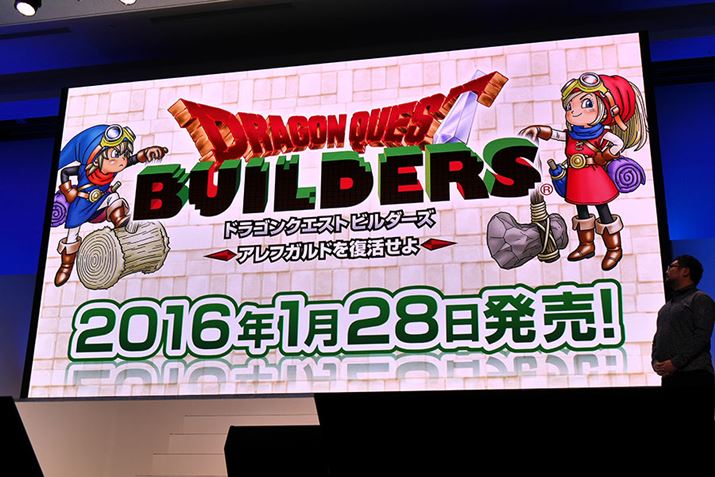 新タイトル紹介で、最後に登場したゲームデザイナーの堀井雄二氏が発表するのは、もちろん「ドラゴンクエスト」シリーズで、まずは「ドラゴンクエストヒーローズII 双子の王と予言の終わり」から。前作から主人公や世界観も一新し、通信時には最大4人同時でのマルチプレイも楽しめるとのこと。声優さんのキャスティングも終わったと堀井氏の口から語られた。続いて、ディレクターの新納一哉氏が登壇し、発売日が2016年1月28日に決まった「ドラゴンクエストビルダーズ アレフガルドを復活せよ」のプロモーション映像を紹介。東京ゲームショウでは、新しいステージで本作を体感できるとのことだ。