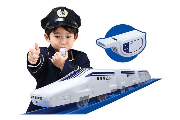定番のプラレールですが、笛の吹き方で車両をコントロールできる「笛コン」で遊べるタイプです。また、スマートフォンからも車両を操作することができます。親子で車掌さんごっこが楽しめそう!「ふえではしるぞ! 笛コンE7系北陸新幹線かがやきセット」もあります。