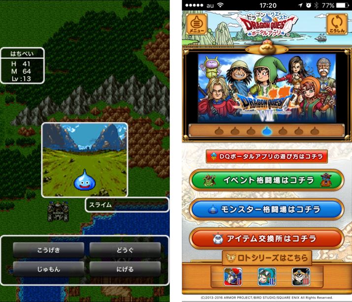 スマホでドラクエをするならドラクエ用のポータルアプリ「ドラゴンクエスト ポータルアプリ」が配信されているので、まずはこれをダウンロード。ロトシリーズのI〜IIIは、ポータルアプリ内で遊べる