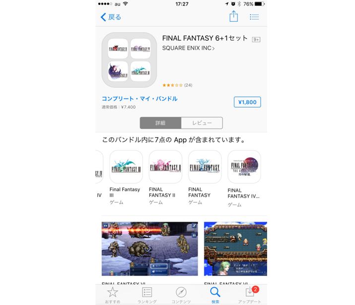 I〜VIにIVの続編が加わった、セット販売も用意されている。まとめ買いだと安くなり、さらにこれまでに買った分の金額は差し引かれるので、二重にお金を払わずに済む