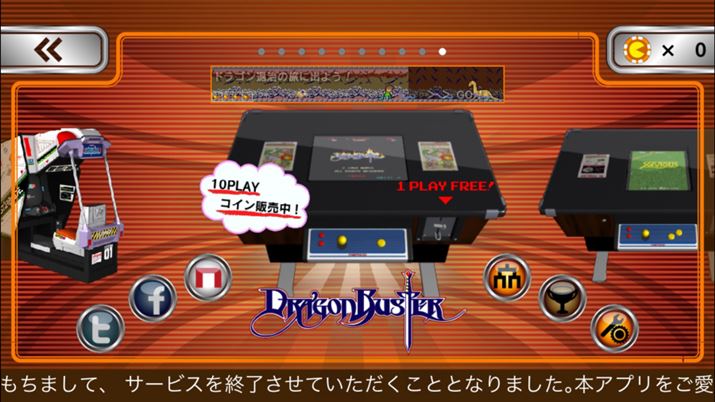 ちなみに、収録タイトルは「ゼビウス(XEVIOUS)」「ドルアーガの塔(THE TOWER OF DRUAGA)」「モトス(MOTOS)」「フォゾン(PHOZON)」「パックランド(PAC-LAND)」「ローリングサンダー(ROLLING THUNDER)」「パックマン(PAC-MAN)」「ギャラガ(Galaga)」「スターブレード(STAR BLADE)」「ドラゴンバスター(DRAGON BUSTER)」の10本。なお、本アプリのサービスが2016年3月16日で終了とのこと。