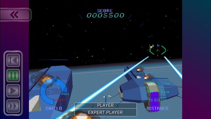 宇宙空間を戦闘機で飛び、迫りくる敵機を次々に撃墜していく3Dシューティングゲームの「スターブレード」。ポリゴンの技術が使われたゲームとして、当時話題になった。エキスパートデモでプレイ映像を楽しむことも可能だ