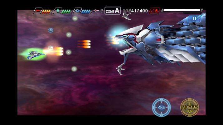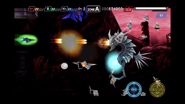 そんな「ダライアス」シリーズだが、スマホ版は2012年に「ダライアスバースト SP(セカンドプロローグ)」が配信。魚型巨大戦艦とのバトルは迫力満点! シリーズ作を遊んだことがある人なら満足すること間違いなし。もちろん、初めて遊ぶ人でも爽快感のあるシューティングを味わえるぞ。