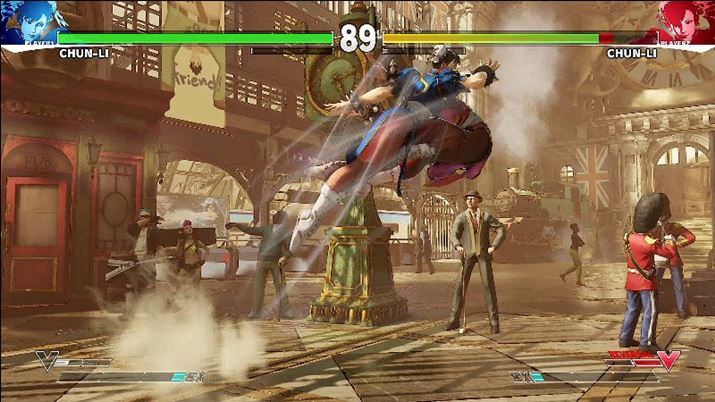 春麗のVスキルは鷲脚。攻撃しつつ斜め前に鋭く跳ぶ、特殊なジャンプだ。途中で攻撃も出せるので、奇襲技として使っていける