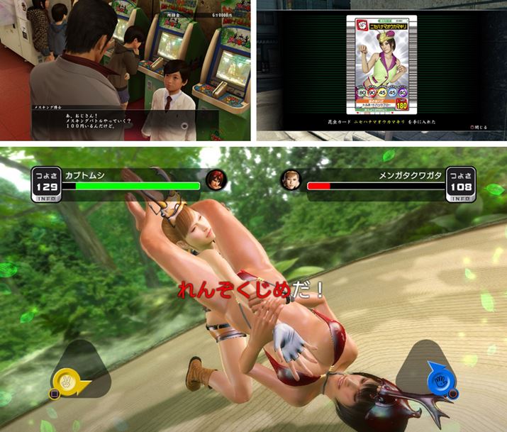 また、街を歩いているとさまざまなサブストーリーも発生する。メインストーリーを補足するようなものも一部あるが、大半は本筋から離れたエピソードばかり。桐生がマッチ売りの少女(?)になったり、桐生と刑事と情報屋のおっさん3人の中で誰がいちばんちょいワルおやじかを競ったり、シリアスな本編とはかけ離れた脱力系サブストーリーも多く、これがいい箸休めになっている。