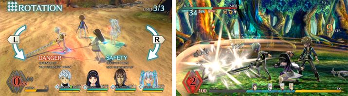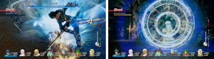 フィールド探索からバトルへは、シームレスに移行。バトルはじゃんけんのような「3すくみ」のシステムを採用し、小攻撃(○ボタン)は大攻撃(×ボタン)に勝り、大攻撃はガード(□ボタン)を破り、ガードは小攻撃を弾くという関係性になっている。敵の動きを予測してキャラクターごとのガードカウンターを決めるなどアクション性も高く、スリリングな駆け引きも楽しい。MPを消費して放つ「バトルスキル」や「呪印術」、超必殺技「リザーブラッシュ」といったバリエーション豊富な大技も爽快だ。パーティメンバーと親しくなり、特別なイベントを楽しむ「プライベートアクション」などシリーズならではの要素も盛り込まれ、新旧ファンを取り込むつくりとなっている。