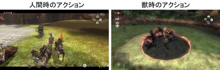 リンクが人間の状態であれば、剣や盾を使った戦闘、馬での移動などが可能に。獣の姿になると、かみつき攻撃や結界を張った複数攻撃を繰り出せる