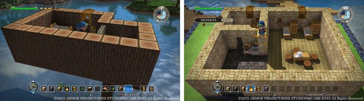 「ドラゴンクエスト」らしい、冒険ストーリーも見どころのひとつ。舞台となるアレフガルドは闇に覆われ、荒廃しきっている。町にはほとんど人影もなく、残された人々もものづくりの力を失っている状態だ。そんな中、現れたのが主人公。襲い来るモンスターから町を守りながら、やがて主人公はアレフガルドに光をもたらしていく。初代「ドラゴンクエスト」を知る人なら「おっ!」と思う展開も待っているので、当時夢中で遊んだお父さんお母さんが、子どもにうんちくを披露したり、子どもに手を貸したりしながらプレイするのも楽しい。また、自由にものづくりができるフリービルドモードも搭載。特定のエリアに作った建築物は、ほかのプレイヤーと共有できるのでどんどん公開してみよう。逆に、ほかのプレイヤーの建物を自分のフィールドに出現させることも可能だ。あっと驚く意外なアイデアや「どうやって作ったんだろう」と思うような建物も多く、大いに創作意欲を刺激されるだろう。