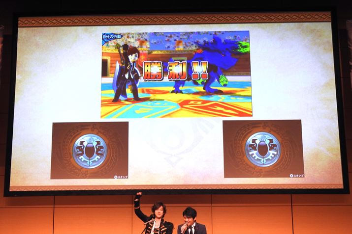 ストーリーやゲームの進め方の説明のあとは、タレントのDAIGOさんが登場。「モンスターハンター」シリーズでイメージキャラクターをつとめ、モンハンの大ファンでもあるDAIGOさんは、同作でもイメージキャラクターとしてCMに出演することが決定している。発表会では、DAIGOさん対プロデューサーの辻本氏で、実際に通信対戦を行った。