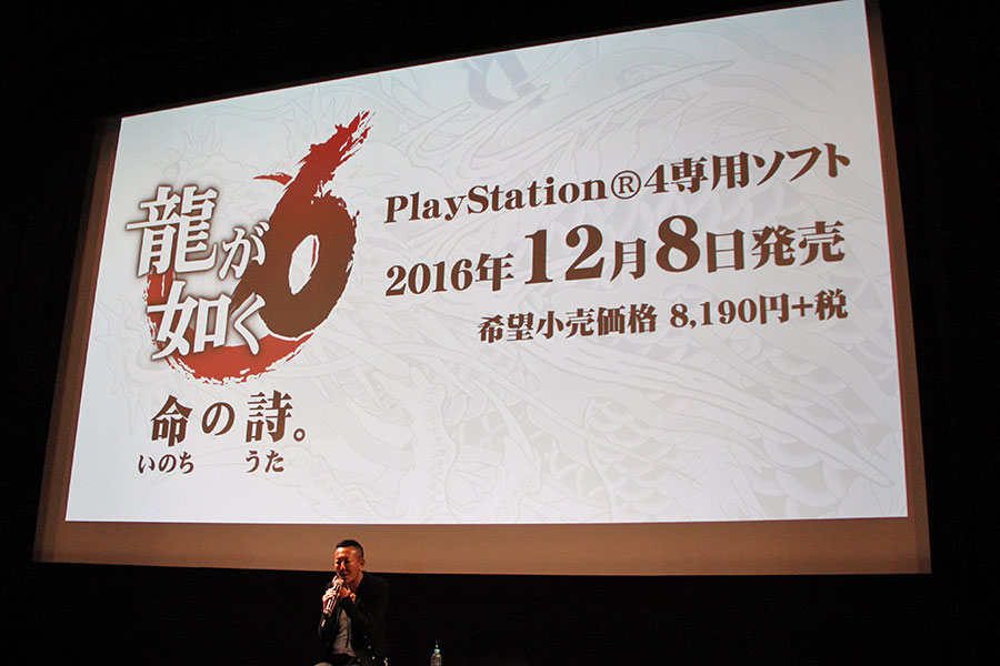 最後に、発売日が2016年12月8日と発表された。この日は、奇しくも1作目「龍が如く」の発売と同じ日。「こじつけたわけではないが、ひとつのドラマの結末を迎えられるのは感慨深いものがある」と名越氏。当初は2016年秋発売予定と公表していたことについては「2016年秋発売予定と言っていたので、12月は秋かと言われると……、そこは勘弁してほしい」と、苦笑いしていた。