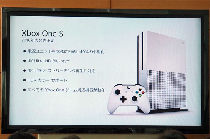 Xbox One S。これまで同様、国内は年内発売予定とだけアナウンスされ、価格等の詳細は今回のイベントでも明らかにされなかった