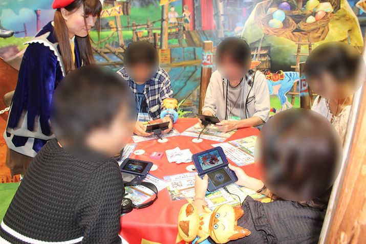 「モンスターハンター ストーリーズ」試遊スペースには、一度に40人ほどがプレイできる数の3DSが用意されているので、大勢が並んでいてもそれほど待たずに順番が回ってくる可能性がある。RPG要素を取り入れた新しい「モンハン」を、ひと足先に体験しよう