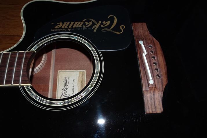 タカミネDMP861Cはエレアコ(編集部注:エレクトリックアコースティックギターの略。普通の生音での演奏に加え、アンプにつなげば音質やボリュームなどを調整可能。筆者のモデルのようにチューナー内蔵タイプもある)なので、内部には電子部品が搭載されています。今のところ、演奏ではまったく活用しておらず、一生使いそうにありませんが、エレアコは弦のチューニングをするときに音を合わせやすいのが大変便利なので選びました。