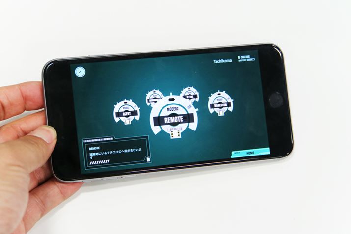 1/8タチコマをリモートコントロールする専用アプリのUIにも攻殻機動隊らしいデザインを採用(画像は開発中のアプリになるため、製品版は異なるデザインになる可能性があります)。なお、アプリの対応スマートフォンはiOS 9.3以上、Android 4.4以上です