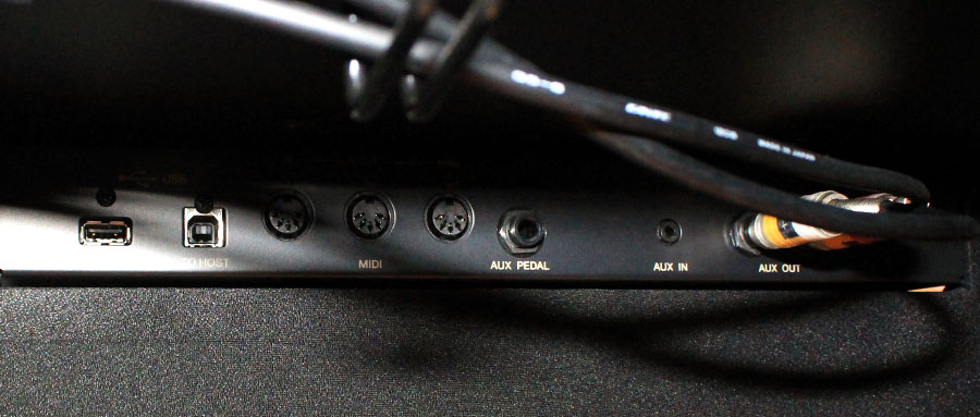 外部接続インターフェイス。MIDI入力や外部スピーカーへの出力に対応する