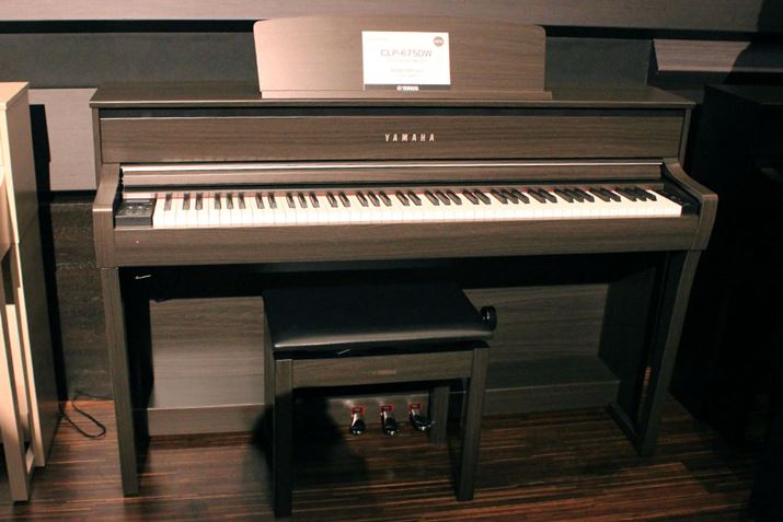 次位モデル「CLP-675」。同じく新開発のGrandTouch鍵盤を採用する。内部スピーカーは、16cmフルレンジスピーカー、8cmフルレンジスピーカー、5cmツイーターを搭載する3ウェイ。価格は、黒鏡面艶出しモデルが328,000円(税別)/それ以外のモデルが288,000円(税別)