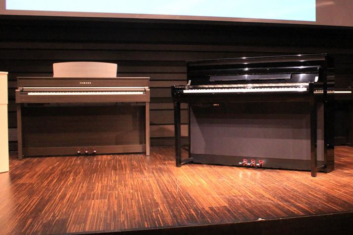 普段、自宅でヤマハのアコースティックピアノを使用している筆者も少し触らせてもらったが、確かにエスケープメントの手ごたえがしっかり感じられ、弱音のニュアンスも出しやすくなっている。また、生ピアノメーカーならではの、自社製アコースティックピアノをベースにした音作りになっているので、聴きなれた「ヤマハの音」であることも好印象。なお、4製品とも黒鍵はプラスチック製だが、木目調の仕上げになっていることで手触りが非常によく、快適性が高い。なお新世代モデルより、最エントリー機のCLP-635も黒鍵が木目調になった(前世代CLP-535ではプラスチック仕上げだった)