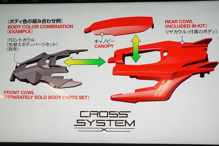 「DCR-01(デクロス-01)」は、初のボディ分割方式を採用し、これまではステッカーや塗装で施されていたカラーコーディネートが手軽に楽しめます