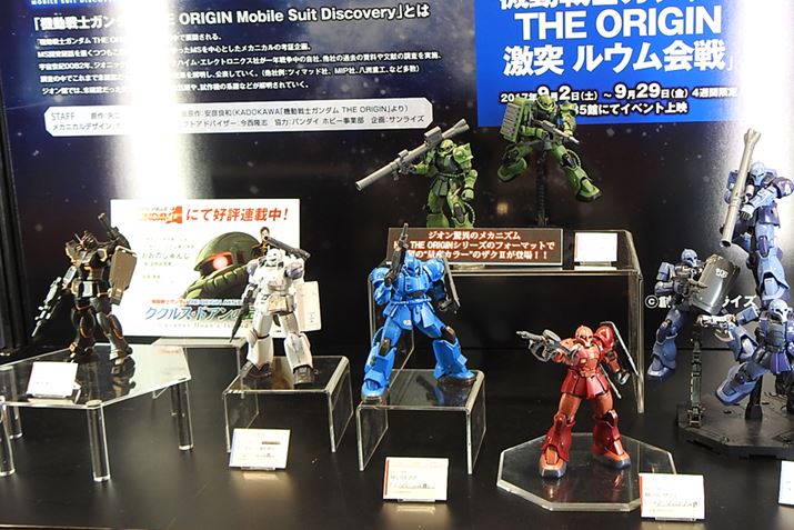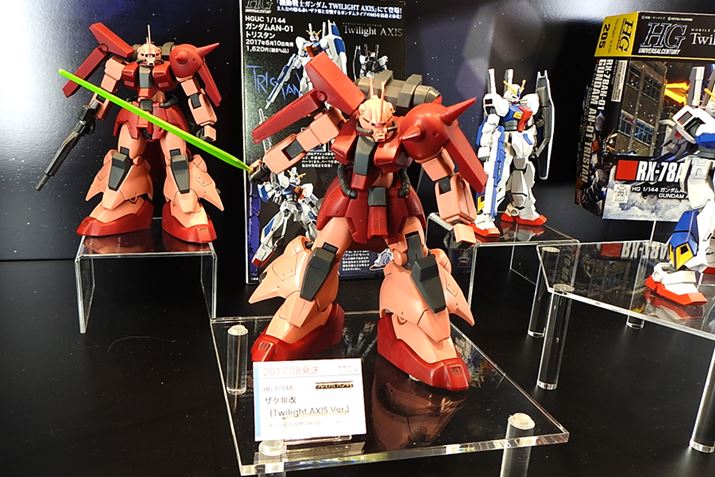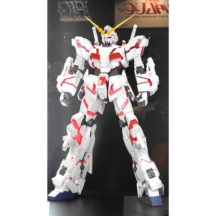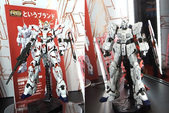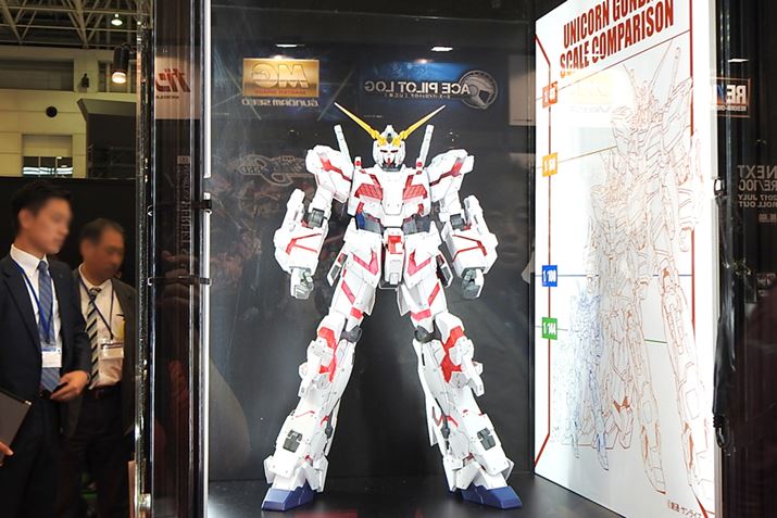 バンダイブースでは、新作のガンプラが多数並んでました。なかでも注目されていたのは、RG(リアルグレード)で登場した、1/144スケールのユニコーンガンダム。変身機構を実装しており、ユニコーンモードとデストロイモードいずれにも変身できます。