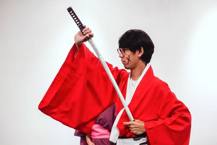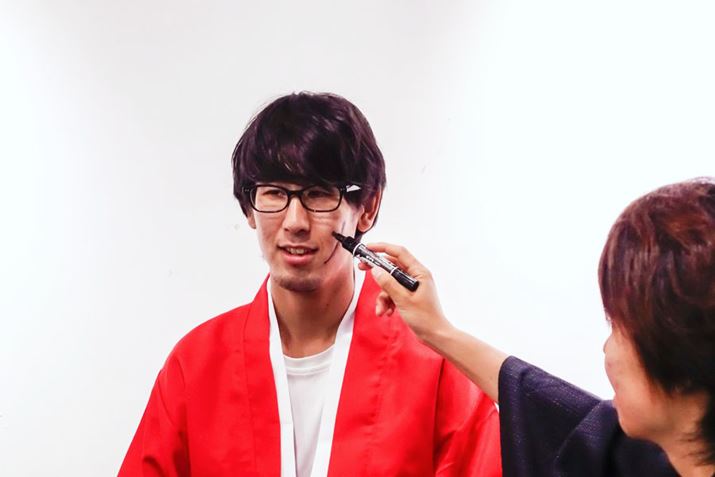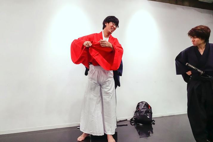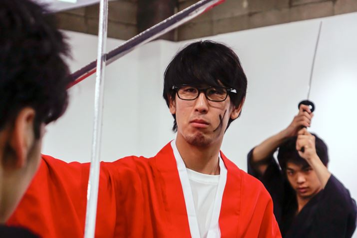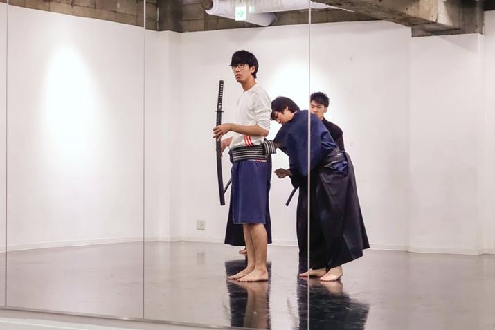 この日は五代先生のほかに、森繁先生とサムライブに通う生徒3名も協力してくれた。舞台前の忙しい合間を縫って取材を受けてくれたので、わずか1時間しか練習できる時間がない。そんな短い時間で果たして『るろうに剣心』の佐藤健のようになれるのだろうか…。