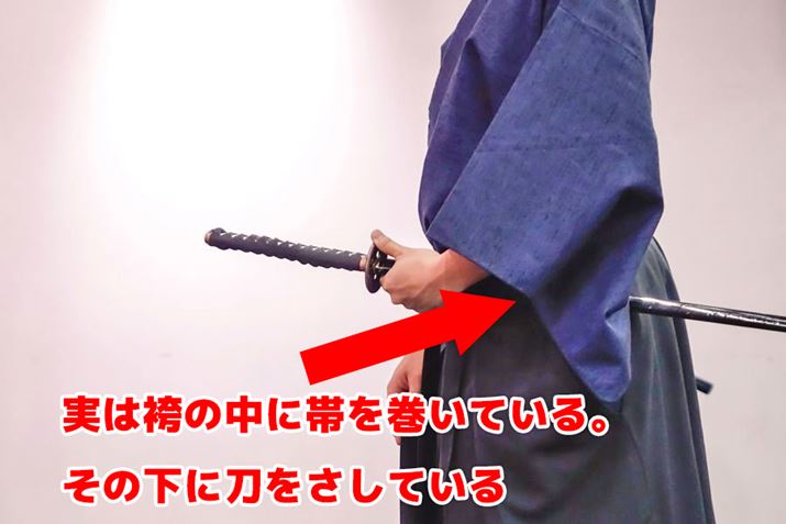僕は今まで、刀をぶら下げるヒモみたいなものが袴に付いていて、そこに刀をさして持ち歩くのだと思っていた。刀にヒモが付いているものもあるらしいが、どちらかというと帯にさすほうが一般的なようだ。