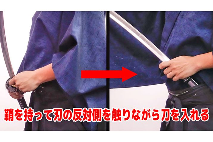刀には「はばき」と呼ばれるひっかかりのようなものが付いていて、鞘に入れた状態の刀を反対にしても落ちないようになっている。鞘の入り口を鯉口(こいくち)と呼び、時代劇で刀をしまう際に「キン」と音がするのは、はばきと鯉口がハマっている音なのだ。