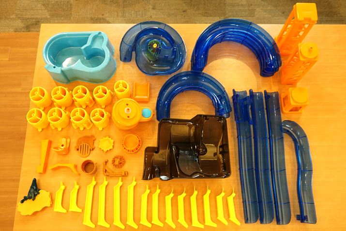 まずは四の五の言わず、「エクストラジャンボ」で流しそうめんを実際にやってみることにしました! 本体の組み立てから始めます。使用するパーツは全部で51パーツ。これら以外に製氷トレーが付属します。
