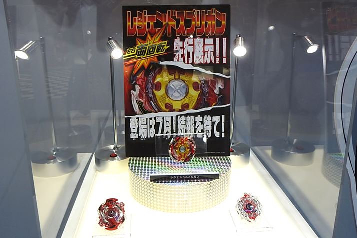 タカラトミーブースでは、以前から噂されていた、待望の“左右両回転”ベイブレード「レジェンドスプリガン」が展示されていました!今回のおもちゃショーで初登場とのことです。会場ブースでは一部写真の撮影は禁止となっていましたが、実物をチェックできるチャンスです。7月の続報が待ち遠しいですね。