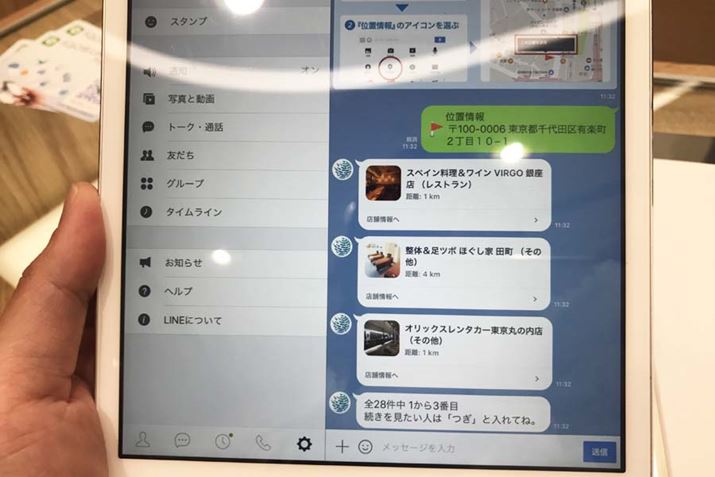 トークルームに「銀座」と入力するだけで、銀座周辺の「アイコス」を利用できる施設や場所を教えてもらうこともできるように!