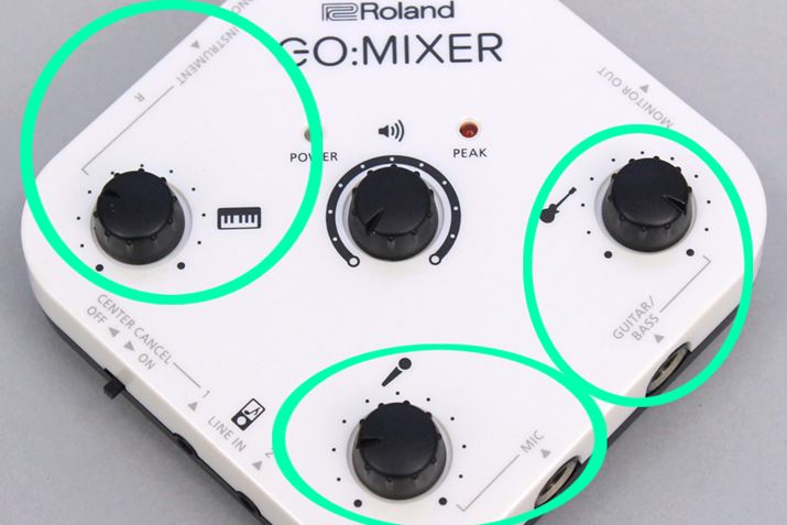 インターフェイスは本体上面のツマミのみ。操作がわかりやすく、直感的に各入力の音量をコントロールできます。複雑な機能はないあたりが、逆に簡単で使いやすい!