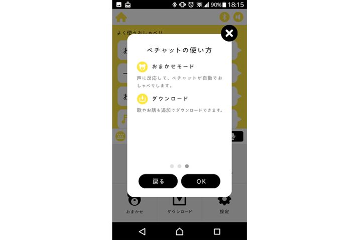1つ目は、ペチャットが声を探知しておしゃべりを続けてくれる魔法のような「おしゃべりモード」。