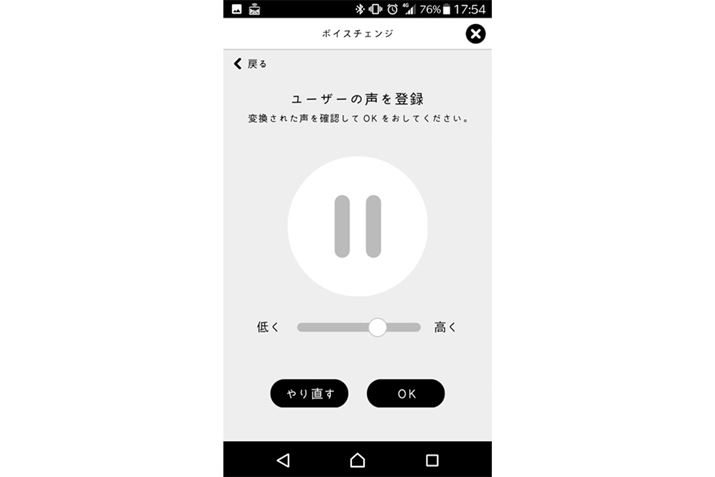 自分で吹き込んだセリフをかわいい声に変換してくれる「声でおしゃべり」のときに使うのがこのボイスチェンジです。高さを選べるので、お好みの設定にしてください。