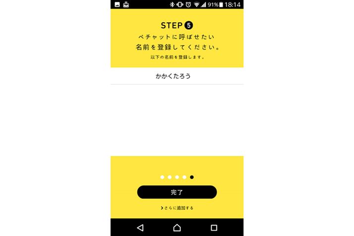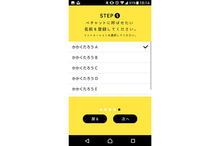 最後に、ペチャットに呼んでほしい名前を入力します。イントネーションも変えられて、これが本当に自然!