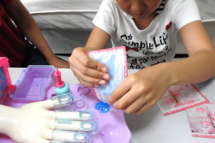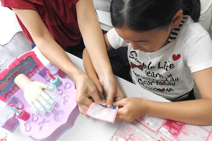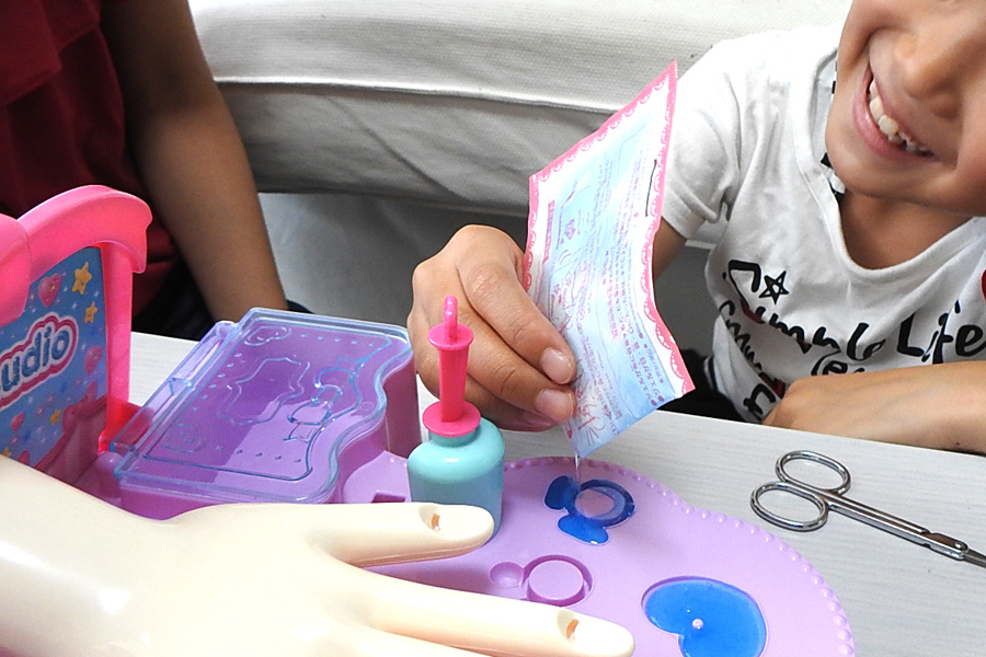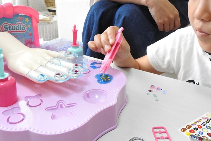 ネイルアーティストスタジオを、子どものおもちゃとあなどるなかれ。なかなか本格的なアクセサリーが作れ、仕上がりも大満足です。子ども1人で作れるのか少々疑問でしたが、小学3年生の女の子の集中力と“かわいいもの”に対する食いつきは相当なもの。ただ、ジェルを型からはずしたり、ハサミで切ったりする工程は多少コツがいりますし、失敗してしまう可能性もあるので慣れるまでは大人と一緒に作ることをおススメします。