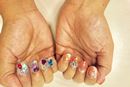 ロングネイルを、お母さんと姪っ子でお揃いでつけたところ。ゴージャスで素敵です