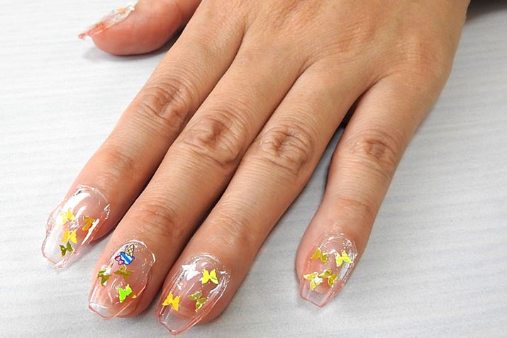 ネイルを塗っていく過程でどうしてもジェルがはみ出してしまうのですが、乾いた時にはさみでチョキチョキ切ればきれいに形を整えられるので問題ありません。また、ジェルの残量を確認するためにも、片手ずつ塗って、デコレーションするのではなく、左右一気に塗ることをおススメします。