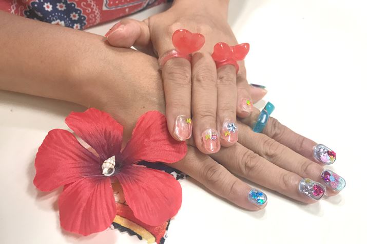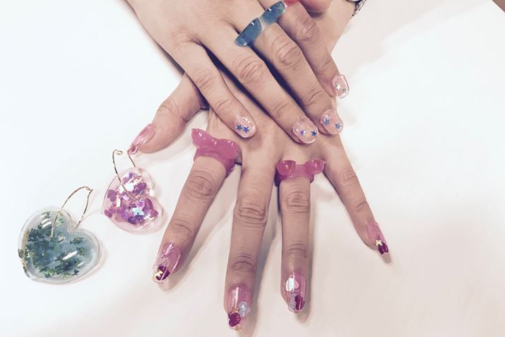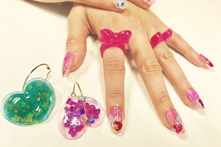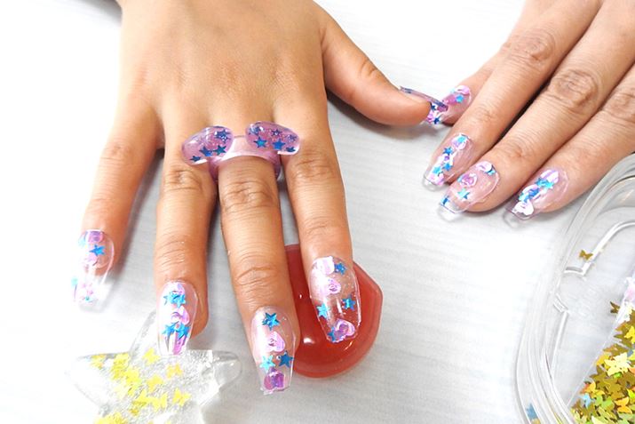 デコったネイルを日が当たりにくい場所に置いて24時間待ったら、完成。それぞれ型からはずします。指でうまくはずれない場合は、つまようじを使うといいでしょう。リングなどは、はみ出て固まったジェル部分を引っ張ると気持ちよくニュルッとはずれます。
