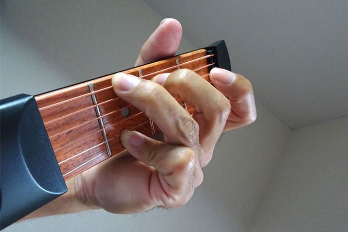 ギターのネックやフレット、弦が忠実に再現されており、いつでもどこでも左手のコード練習ができるというモノ!