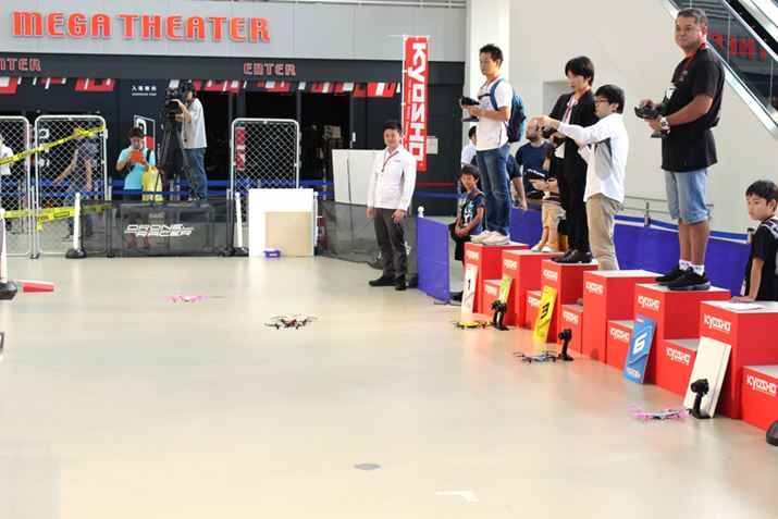 今回のレースイベントを通して、「DRONE RACER」の将来性を感じた。飛行体が地面スレスレの場所でぶつかり合いながらレースをするという近未来感や、ラップカウントシステムによるしっかりとしたレース設計により、「DRONE RACER」は次世代RCレーシングモデルとして普及するのに十分な魅力を持っている。前述の田中さんの例を取ってみても、RCカーと同じホイールタイプの送信機を採用し、RCカーのレーサーでもすぐに「DRONE RACER」に移行できるようにした京商の戦略も功を奏している。今回はシンプルなオーバルコースだったが、障害物があるような複雑なコースを使ったレースをやったら、さらに盛り上がることは間違いない。