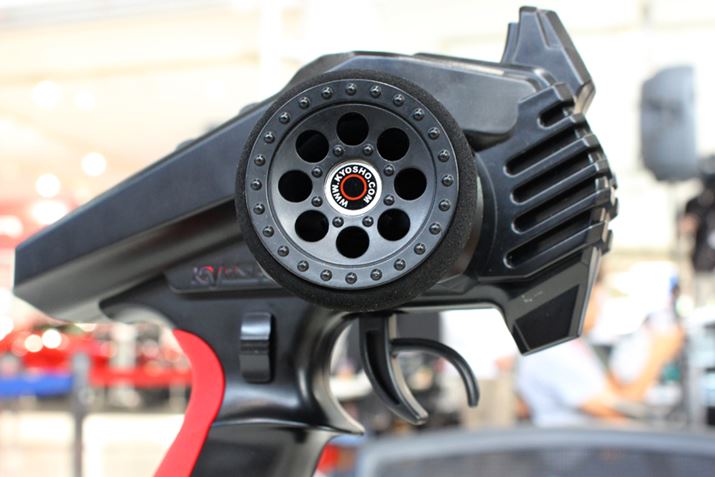 航空機のインストルメントパネルを彷彿とさせるデザインが施された2.4GHz仕様のホイールタイプ送信機が付属