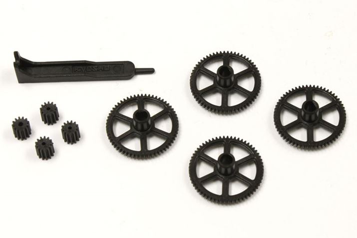 「DRONE RACER」用オプションパーツ「ハイギヤードセット DRW001」(税込756円)は、コーナリング時の浮力が増し、安定した速いコーナリングを可能にする。オプションパーツはほかにも、強化アームや高回転型モーターなどがそろう