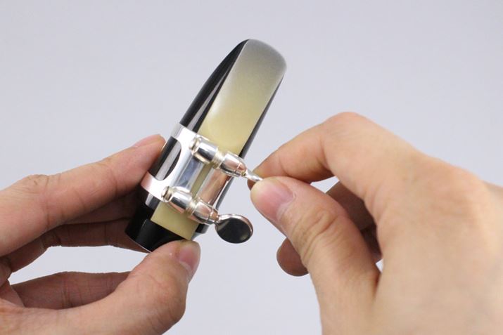 リガチャーで固定する仕組みなどは普通のリード楽器と同じ。製品に装着された状態で出荷されてくるので、届いたらそのまま吹き始めることができます